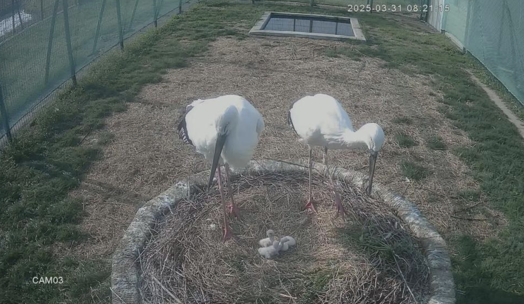 화포천습지 봉하뜰에서 부화한 황새 새끼 3마리 (출처: 김해시)
