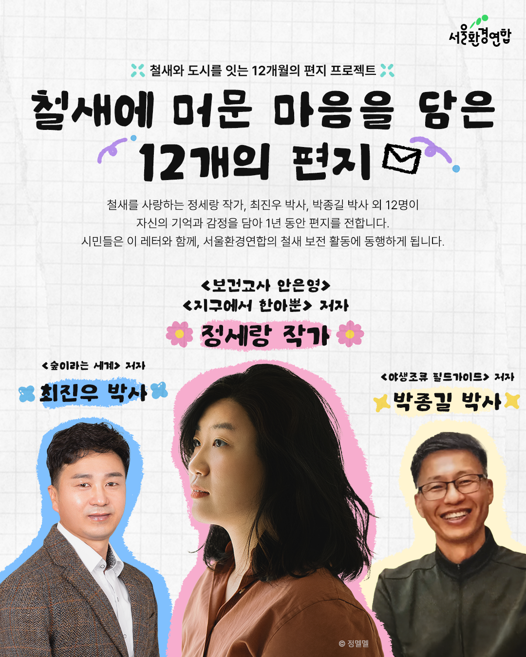 이 프로젝트는 그런 마음에서 시작되었습니다. 정세랑 작가, 최진우 생태전문위원, 박종길 박사를 포함한 12명의 필자가 각자의 기억과 감정을 담은 편지를 1년 동안, 달마다 한 편씩 전합니다.