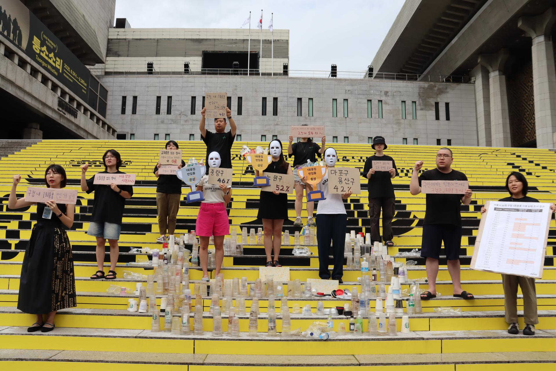 구청에 텀블러 세척기가 늘어났지만, 여전히 청사 안으로는 수많은 1회용 컵이 쏟아져 들어오고 있습니다.🥤🚫 서울환경연합이 2025년 25개 구청을 점검한 결과, 다회용 시설은 늘었어도 정작 1회용품 반입을 막는 실질적인 규제는 제대로 시행되지 않고 있었습니다.
