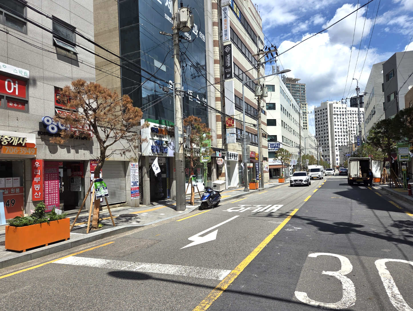 이 자리에 심은 나무는 소나무였습니다. 문제는 소나무가 도로변 가로수로 적합하지 않다는 점입니다. 소나무는 염분과 매연에 약하고, 뿌리 구조상 보도 환경에서 안정적으로 자라기 어렵다는 지적이 꾸준히 제기돼 왔습니다. 또한 소나무는 송진이 많이 나오는 나무입니다. 주민들은 차량과 보행자에게 피해가 발생할 수 있다며 ‘졸속 행정’이라고 지적하고 있습니다.