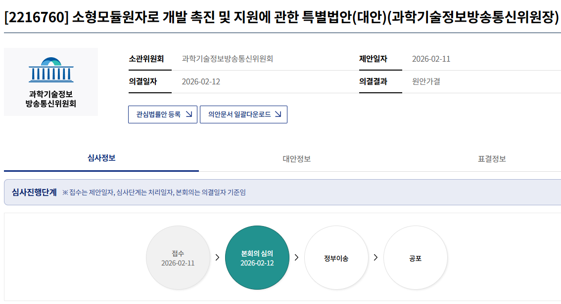 소형모듈원자로 개발 촉진 및 지원에 관한 특별법안 (출처: 국회 의안정보시스템)